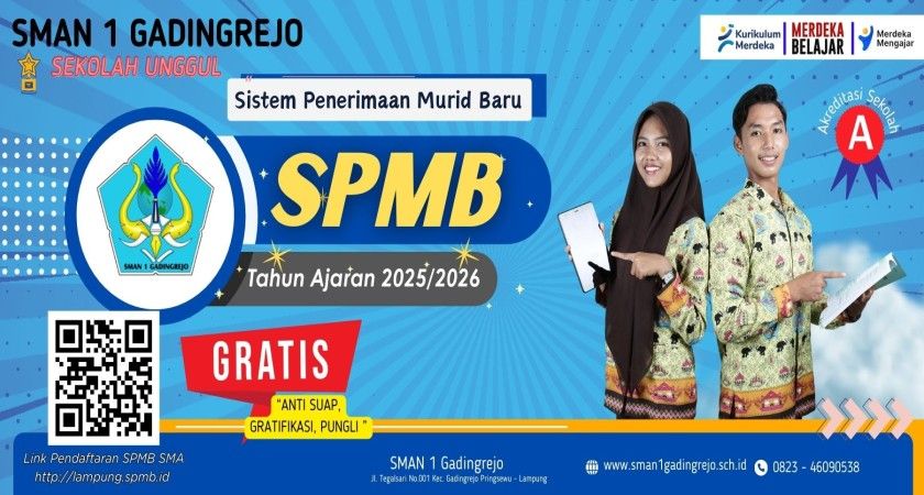 SMAN 1 Gadingrejo kembali membuka pendaftaran calon peserta didik baru melalui Sistem Penerimaan Murid Baru (SPMB) 2025. Pendaftaran dilakukan secara online melalui laman: http://lampung.spmb.id.
